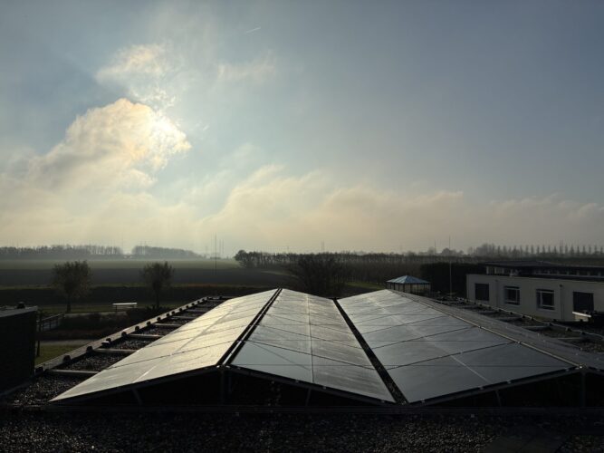 Wat deze installatie bijzonder maakt, is het innovatieve montagesysteem van Rable. In plaats van een traditioneel systeem met zware ballast, maakt Rable gebruik van een lichtgewicht draagsysteem dat stevig verankerd wordt zonder extra belasting van het dak.